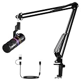 COMICA ダイナミックマイク USB/XLRデジタルとアナログデュアル出力 ゲーミングマイク 単一指向性 ブームアーム付き RGBライティング ノイズ軽減 ライブ配信 ゲーム実況 在宅勤務 ポッドキャスト ストリーミング ナレーション録音に最適 PC/PS4/PS5/サウンドカード/オーディオミキサー対応 EJoy D10(黒)